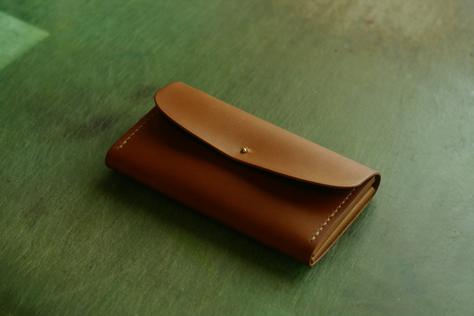 縦入れカード収納で取り出し易い構造になっています。 蓋を閉じた見た目は至ってシンプルに。 革も経年変化をし易く、飽きずに永くご愛用頂けるお財布になりました。 ありがとうございました。